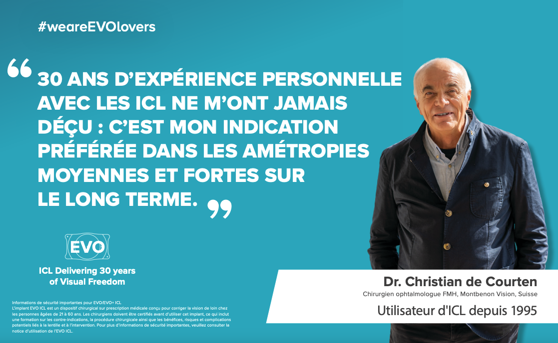 Chirurgie par implant de type verre de contact implantable. L’un des premiers chirurgiens en Suisse à implanter ce type de lentille. Plus de 35 ans d’expérience dans le domaine avec plus de 600 implants posés.